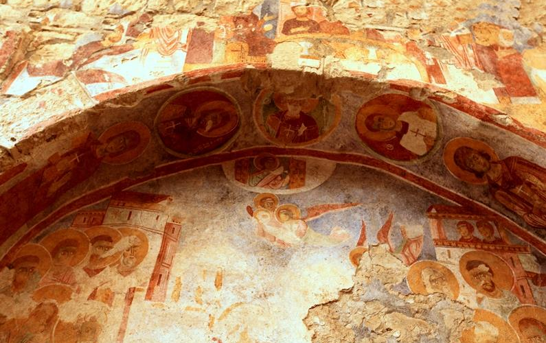 Kilisenin ilk yapı dönemi kesin olarak bilinmemekle birlikte, mimari verilere dayanarak 6. yüzyılda yapılmış bir bazilika olduğu kabul edilir. İlk inşasından bu yana doğal afetler ve istilalar nedeniyle hasarlar gören kilise, pek çok onarım ve ek yapı dönemi geçirmiş; böylece, çeşitli dönemlerde inşa edilmiş bir kompleks görünümü kazanmıştır. Günümüzde görülen halini büyük oranda ortaya çıkaran en önemli restorasyon ise Bizans İmparatoru IX. Konstantinos (1042-1055) ve karısı Zoe'nin yaptırdığı onarımlardır.