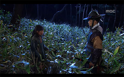 Dong Yi, kaçak kız olarak her yerde aranmaktadır. Kimse nerede olduğunu bir türlü bulamaz, bir ihbar üzerine Müfettiş Seo'nun liderliğinde polisler arama yaparken karşılaşırlar. Dong Yi, babasının suçsuz olduğunu söyleyip saraydan olan bir kadının ölen müfettişin kullandığı işaretleri yaptığını asıl suçlunun o olabileceğini söyleyip onu öldürmemesi için yalvarır. Müfettiş Seo, Dong Yi'nın gitmesi için izin verir polislerin ona ok atmalarını engellemeye çalışır.