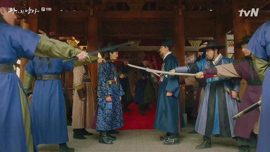 Palyaço topluluğu, Gisaeng'in tavsiyesini ciddiye alır ve kraliçe ve kralın en sevdiği cariyesine olan kıskançlığı hakkında bir gösteri düzenler. Baş Sekreter Lee, her şey ters gittiğinden Gibang'a gider sarhoş olana kadar içer. kralı taklit ederek onunla alay eden soytarıya rastlar ve ona saldırır. Maskesi düşen soytarı kralın bire bir kopyasıdır. Baş Sekreter Lee, hemen Ha Sun'u kilitlemeleri emrini verir.